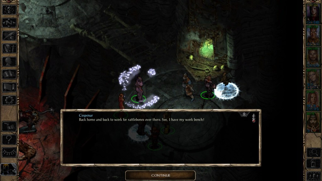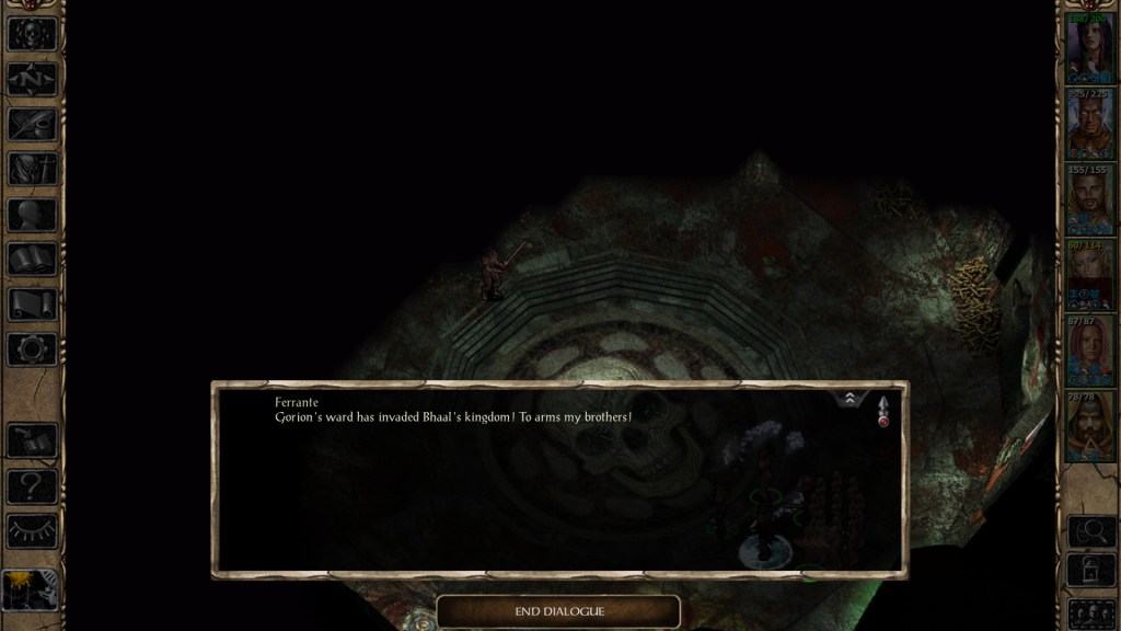 There’s a point in which you have to break the hard news of Bhaal’s death to one of his loyal followers who has been in stasis for as many years as the god has been dead. He seems incredibly torn up about it, but as soon as he hears that Amelyssan is plotting to become the new god of murder, he immediately decides to kill her and take her place. It gave me a good laugh, and it’s totally on brand for the type of writing that Baldur’s Gate II exhibits.
