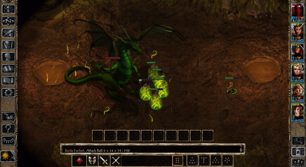 That’s a real, full dragon, by the way. The priest tells the player that it’s “only young” so I was expecting a wyrmling, or something, but nope! It’s just a straight-up green dragon in a reused area from Throne of Bhaal. I actually don’t know how a player that has not removed the experience cap of the game could complete this quest.
