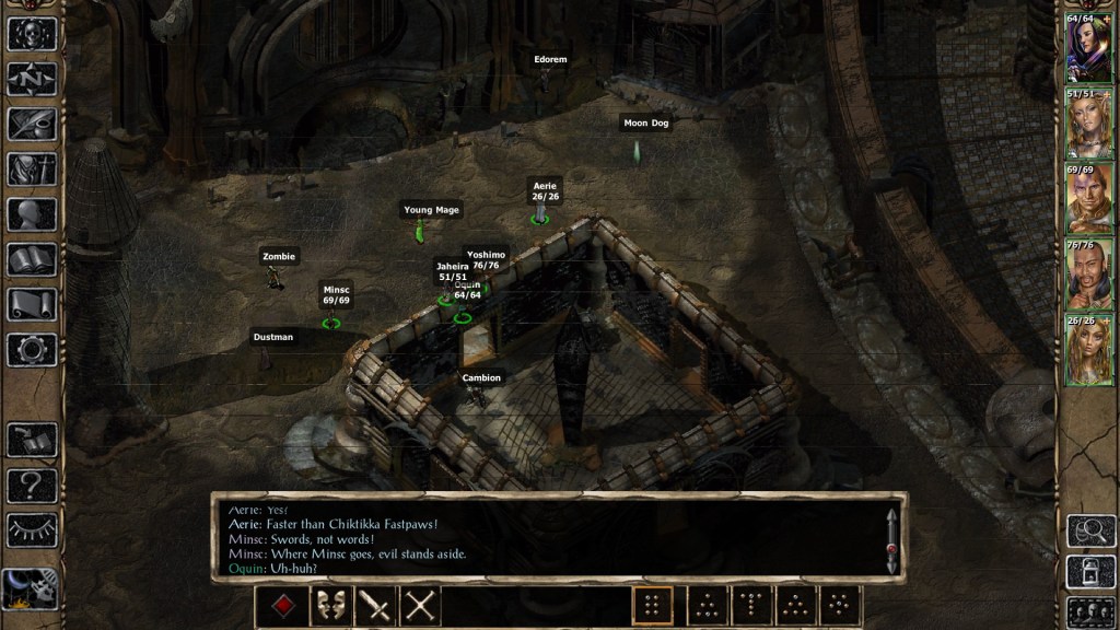 Later, in Throne of Bhaal, we find out that Edorem killed himself because he couldn’t be with Saerileth. He believed that Tyr wanted them to be together. The entire thing is laughable, and the best part is that the mod wants you to be jealous of him after a conversation between Saerileth and Edorem’s spectre. She says that “he was masterfully attempting to seed jealousy in our relationship” but the only thing I’m jealous of is the fact that he’s dead.