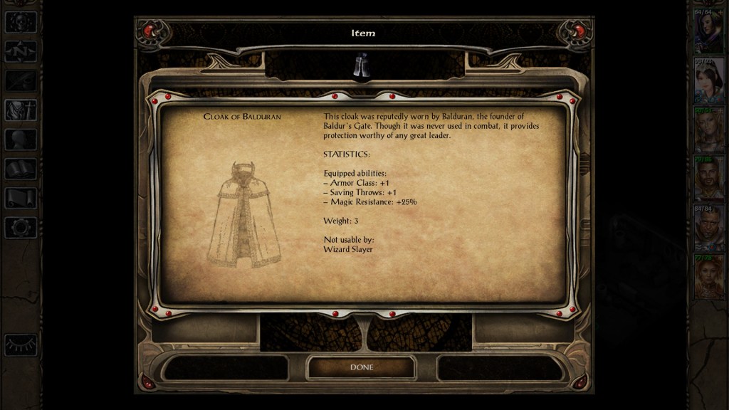 In the Chapter 2 alternative route that this mod provides, you are given a quest, and one of the rewards for that quest is the Cloak of Balduran. It’s one of the best items in the game, no doubt. 25% MR is nothing to sneeze at, especially when stacked with other items.